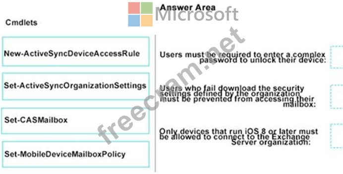 Which cmdlet should you use for each requirement? To answer, drag the appropriate cmdlets to the correct requirements. Each cmdlet may be used once, more than once, or not at all. You may need to drag the split bar between panes or scroll to view content.
