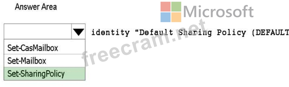 Use the Set-SharingPolicy cmdlet to modify existing sharing policies that control how users inside your organization can share free/busy and contact information with users outside your organization.