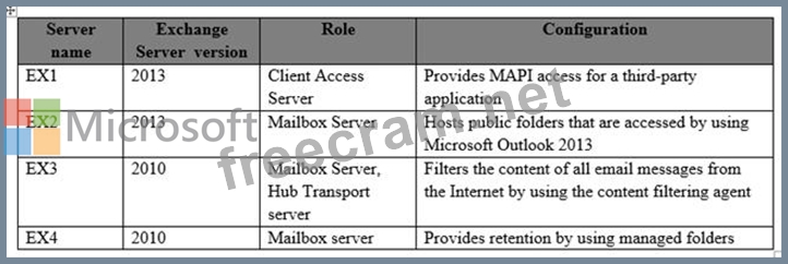 You have an Exchange Server organization. The organization contains four servers. The servers configured as shown in the following table.