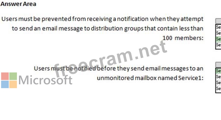 Users must be notified before they send email messages to an unmonitored mailbox named Service1.