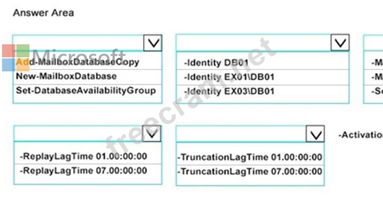 You need to add a replica of DB01 to EX03. The replica must meet the following requirements: