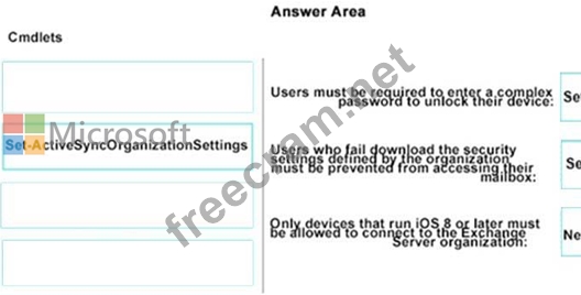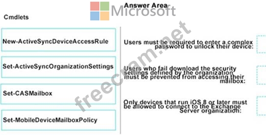 Which cmdlet should you use for each requirement? To answer, drag the appropriate cmdlets to the correct requirements. Each cmdlet may be used once, more than once, or not at all. You may need to drag the split bar between panes or scroll to view content.
