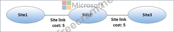 Your network contains an Active Directory forest that has the site topology shown in the diagram.