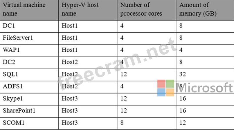 You have three Hyper-V hosts that each have 20 processor cores and 64 GB of RAM. Nine virtual