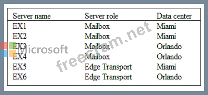 The company plans to deploy an Exchange Server 2016 organization that will contain the servers
