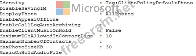 You implement Skype for Business Online. You deploy the following client policy: You have the following requirements: Photos must be displayed for users. If possible, the maximum size for user photos must be 25 KB. You need to reconfigure the environment. Which Windows PowerShell command or commands should you run?