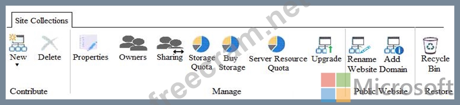 You are unable to configure storage for the accounting department. The Site Collection ribbon for the accounting department site collection is shown below.
