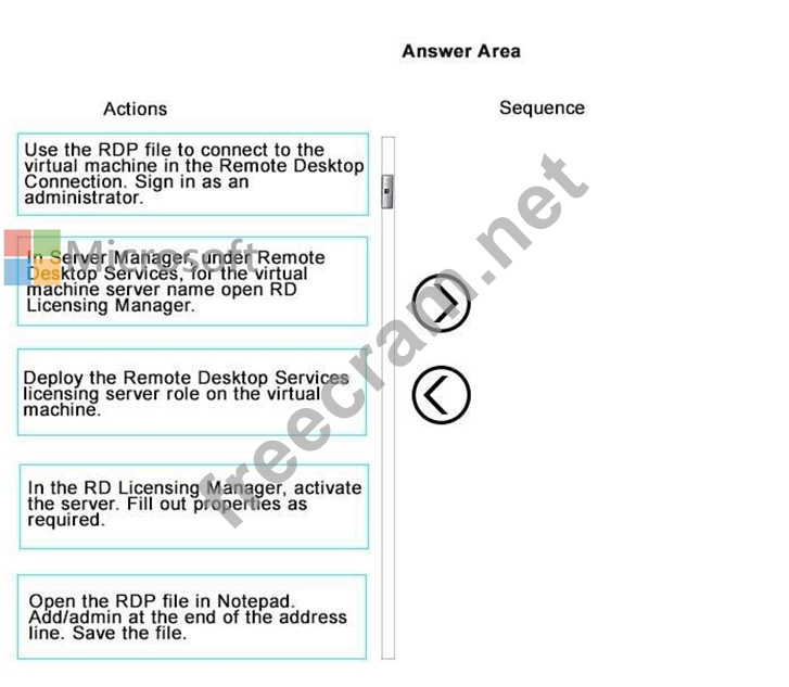 In which order should you perform the actions? To answer, move all actions from the list of actions to the answer area and arrange them in the correct order.