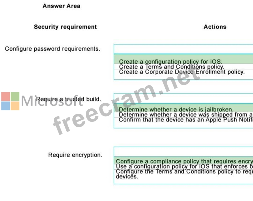 Blue Yonder Airlines has developed a custom inventory management app. Sales department users must be able to access the app from enrolled mobile devices. The data that the app uses is considered confidential and must be encrypted.
