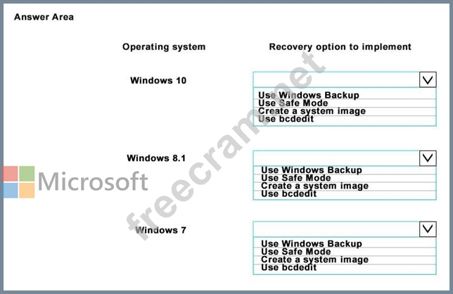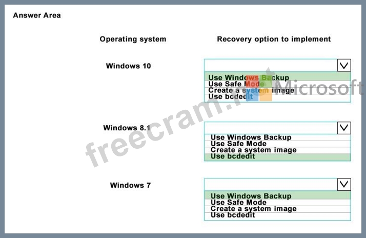 Which recovery options should you implement? To answer, select the appropriate option from each list in the answer area.