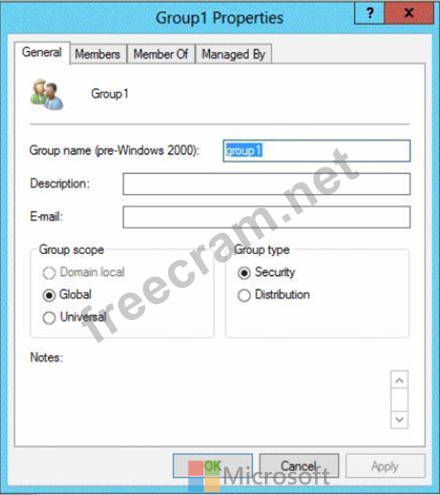 You view the properties of a group named Group1 as shown in the exhibit. (Click the Exhibit button.)