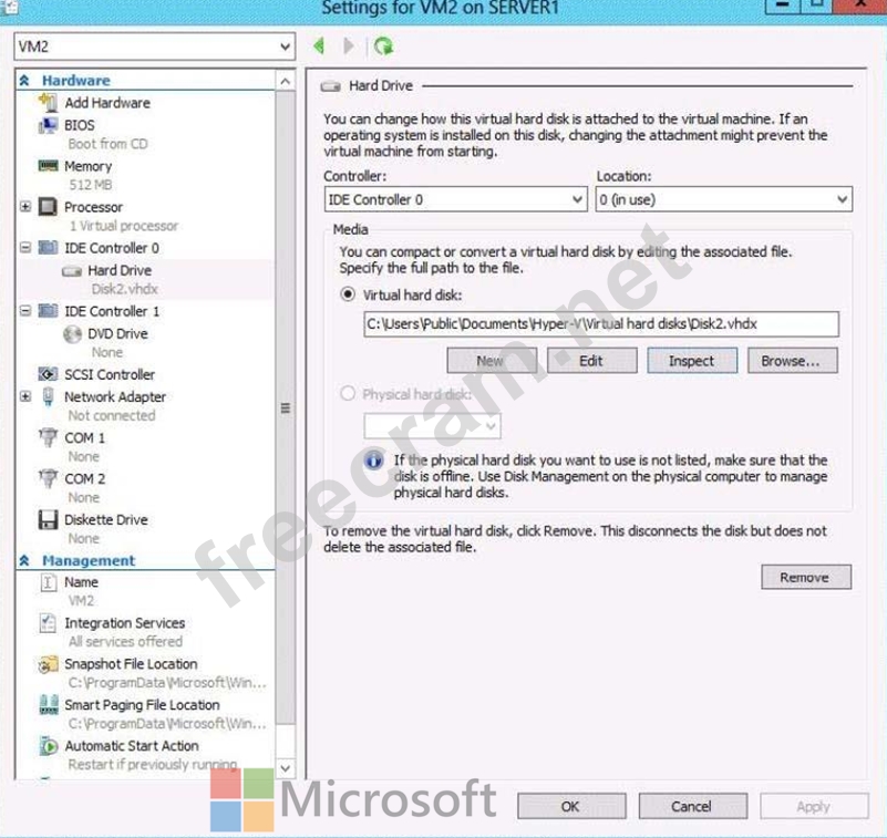 Question 218: HOTSPOT The settings for a virtual machine named VM2 are con...