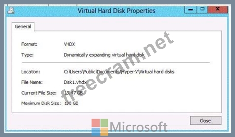 The settings for Disk1.vhdx are configured as shown in the Disk1.vhdx exhibit. (Click the Exhibit button.)