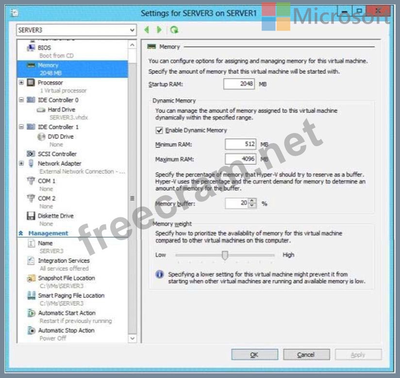 The settings of a virtual machine named Server3 are configured as shown in the exhibit. (Click the Exhibit button.)