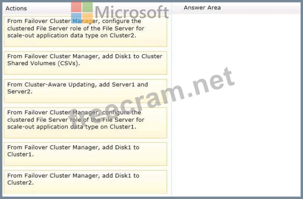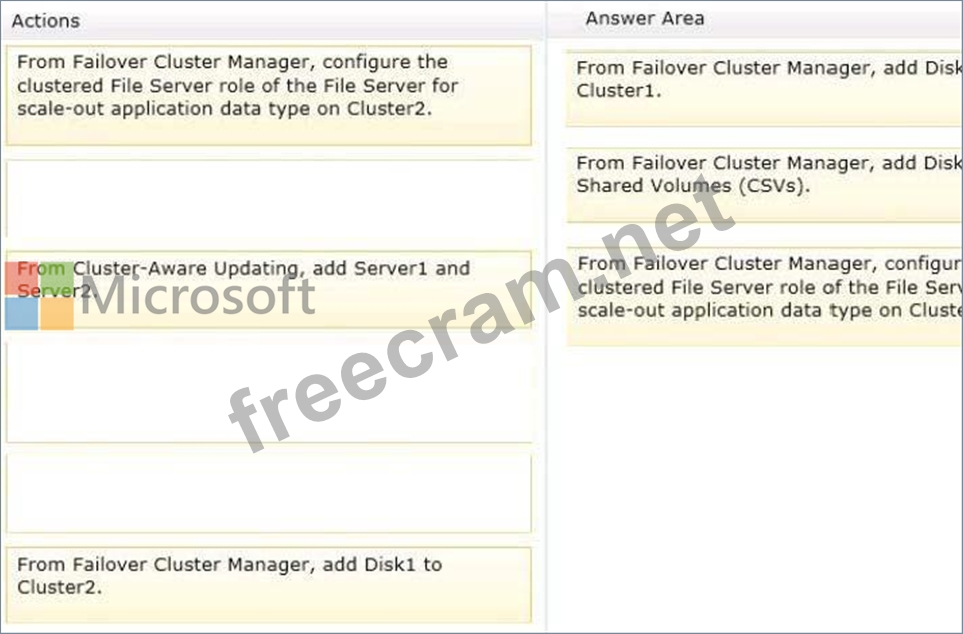 Server1 and Server2 are configured as file servers and are part of a failover cluster named Cluster1.