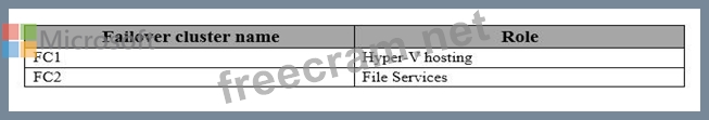 You have two failover clusters. The failover clusters are configured as shown in the following table.