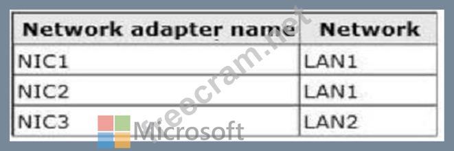 The network adapters are configured as shown in the following table. Hyper1 hosts 10 virtual machines. A virtual machine named VM1 runs a line-of-business application that is used by all of the users of LAN1. All of the other virtual machines are connected to LAN2.