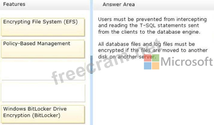 To answer, drag the appropriate feature to the correct requirement in the answer area.