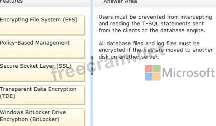 You need to identify which feature meets each security requirement. The solution must minimize processor overhead.