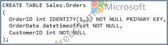 You are designing a Windows Azure SQL Database for an order fulfillment system. You create a table named Sales.Orders with the following script.