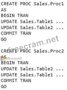 You must reduce the likelihood of deadlocks occurring when Sales.Proc1 and Sales.Proc2 execute.