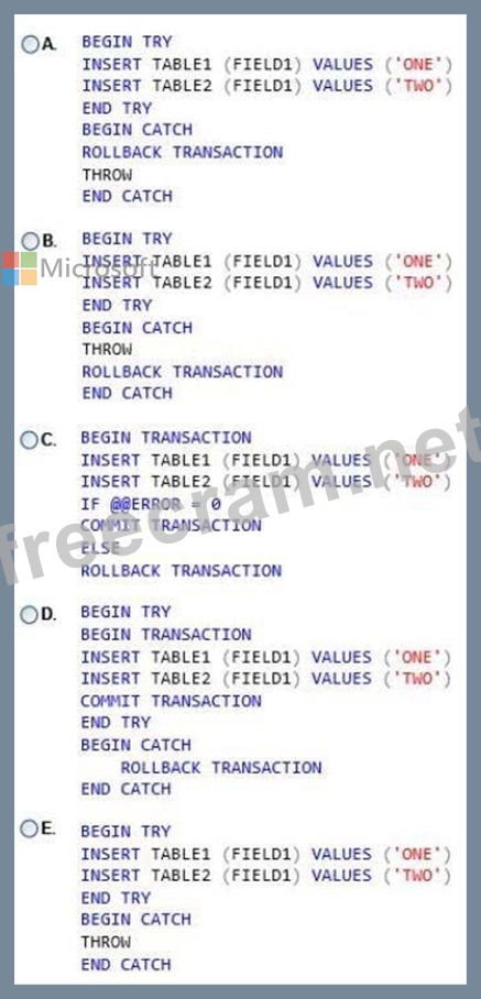 Question 52: You use SQL Server 2014 to maintain the data used by applica...