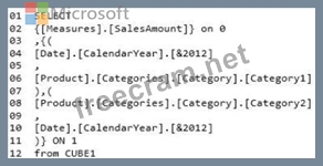 A report named SalesByCategory that uses CUBE1 and the following query statement: (Line numbers