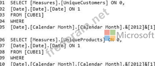 will be hosted in SQL Server Analysis Services (SSAS). CUBE1 will contain two distinct count measures named UniqueCustomers and UniqueProducts. The measures are expected to aggregate hundreds of millions of rows from DB1.