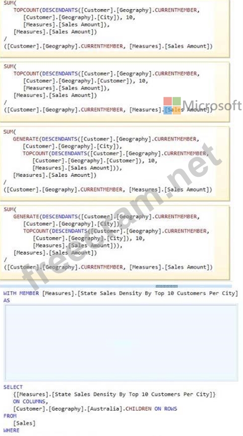 Question 81: You are creating a Multidimensional Expressions (MDX) calcul...