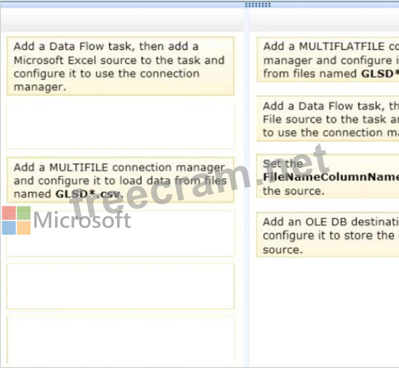 Question 5: DRAG DROP You are creating a SQL Server Integration Services...