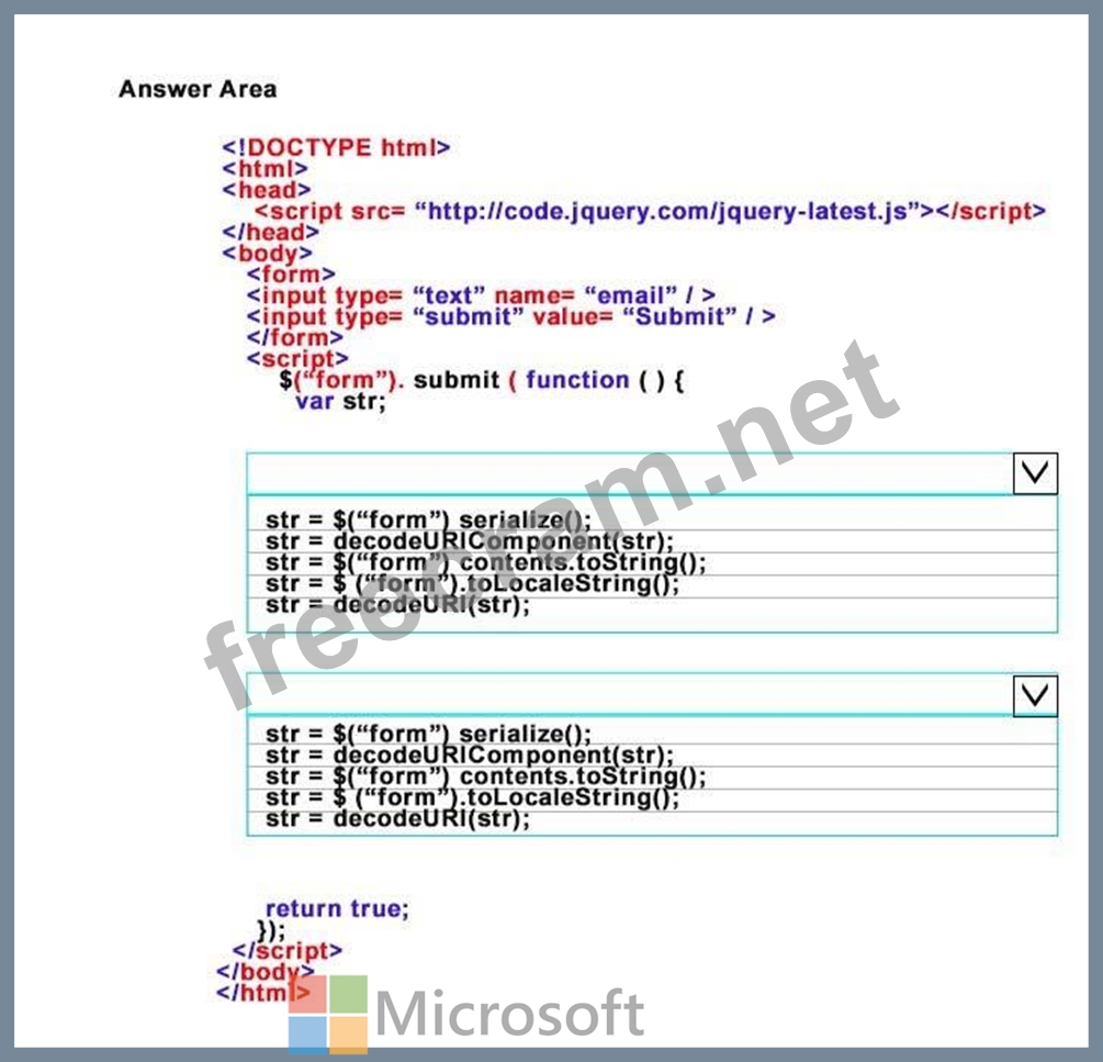 Question 98: DRAG DROP You are developing an HTML5 web application that w...