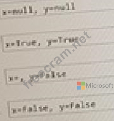 // A) x=null, y=null