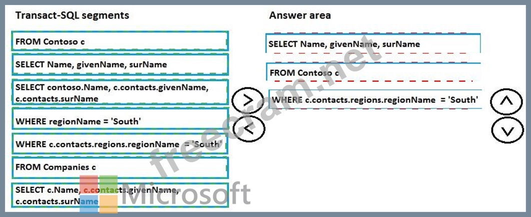 Question 86: DRAG DROP Contoso has an Azure DocumentDB database that cont...