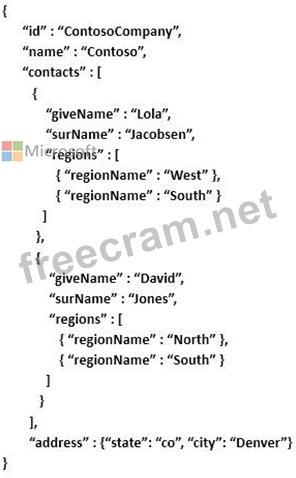 Contoso has an Azure DocumentDB database that contains contact information for customers.