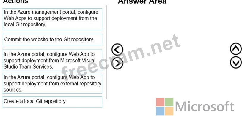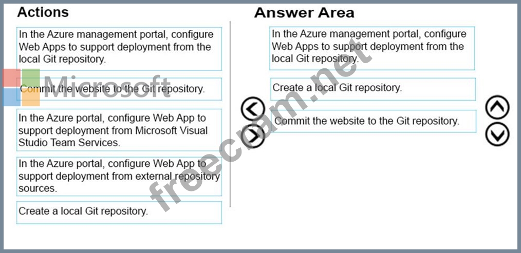 You must move your source code from the proprietary source control product to a secure on-premises Git versioning system. Instead of deploying the website by using FTP, the website must automatically deploy to Azure each time developers check-in source files.