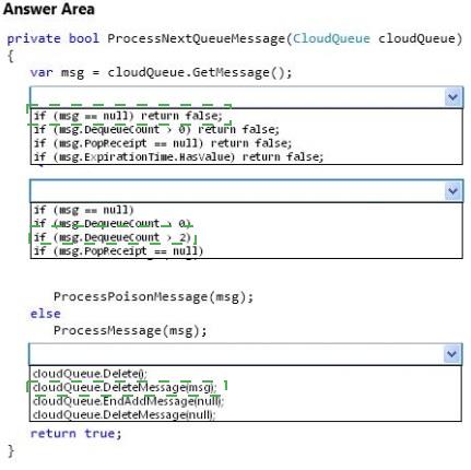 Question 70: HOTSPOT A company creates an Azure worker role to manage pro...