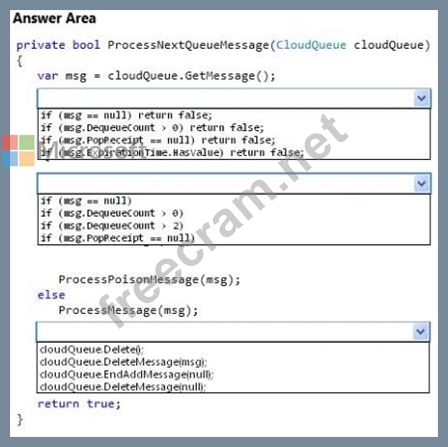 Question 43: HOTSPOT You need to implement the worker role to support the...