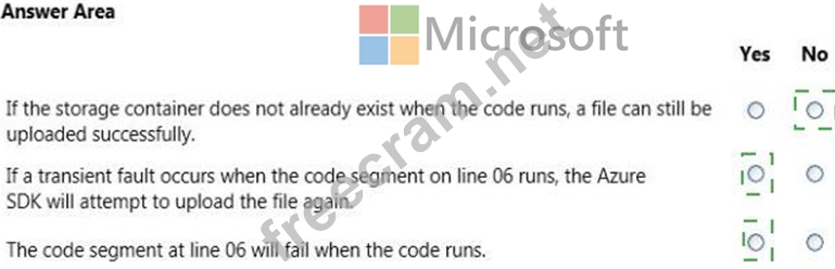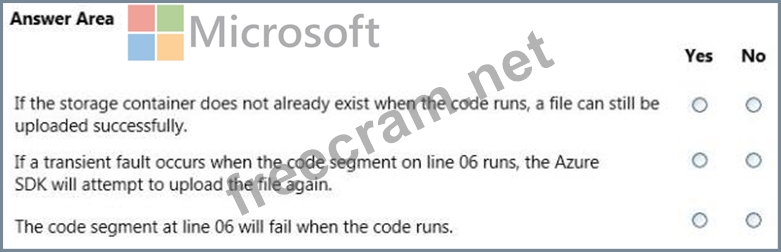 Question 117: HOTSPOT You use the storage client library to develop an app...