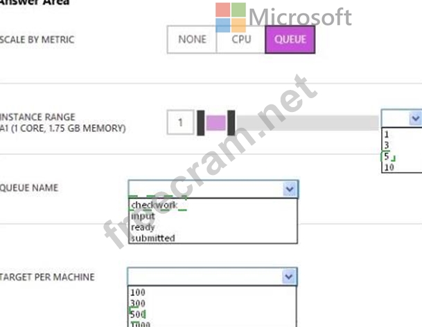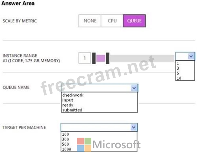 Question 70: HOTSPOT A company creates an Azure worker role to manage pro...