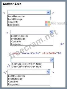 Question 70: HOTSPOT A company creates an Azure worker role to manage pro...