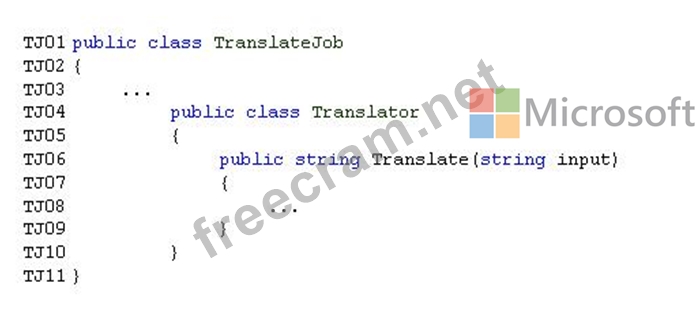 Relevant portions of the TranslateJob.cs file are shown below. Line numbers are included for reference only and include a two-character prefix that denotes the specific file to which the code belongs.