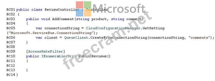 Relevant portions of the ReviewController.cs file are shown below. Line numbers are included for reference only and include a two-character prefix that denotes the specific file to which the code belongs.