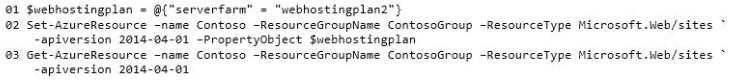 You create the following PowerShell script by using the Azure PowerShell tools. Line numbers are included for reference only.
