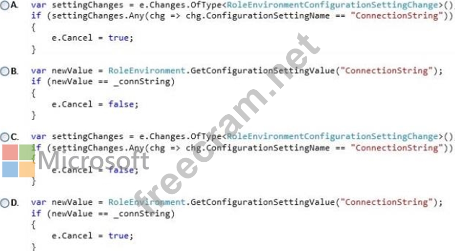 Question 115: You develop a service that runs on a worker role in Azure. T...