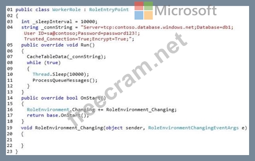 Question 43: HOTSPOT You need to implement the worker role to support the...