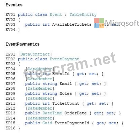 You are a developer for Fabrikam, a company that specializes in payment processing. Fabrikam is developing a solution to process payments for various events, such as music concerts. You develop an ASP.NET MVC website that is hosted in Azure to support an upcoming music concert. The music concert is expected to generate a large volume of ticket sales in a short amount of time.