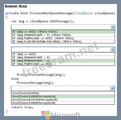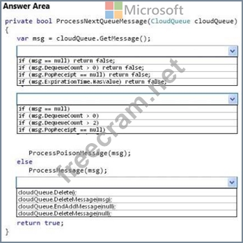Question 91: HOTSPOT A company creates an Azure worker role to manage pro...