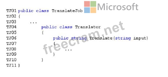 Relevant portions of the TranslateJob.cs file are shown below. Line numbers are included for reference only and include a two-character prefix that denotes the specific file to which the code belongs.
