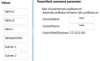 You need to create an internal load balancer named fabLoadBalancer that has a static IP address of 172.16.0.100.
