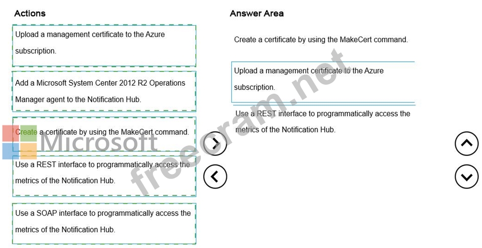 Question 2: DRAG DROP You create a Push Notification service by using an...
